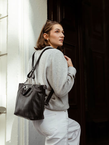 Eine Bürotasche, die man nicht unter dem Schreibtisch verstecken muss! Mit Laptopfach, Steckfach für eine Flasche, Schlüsselring und Kofferlasche. Das Besondere? Zusätzlich kommt das Design mit 3 Umhängeriemen und lässt sich somit auf der Schulter, crossbody oder als Rucksack tragen.